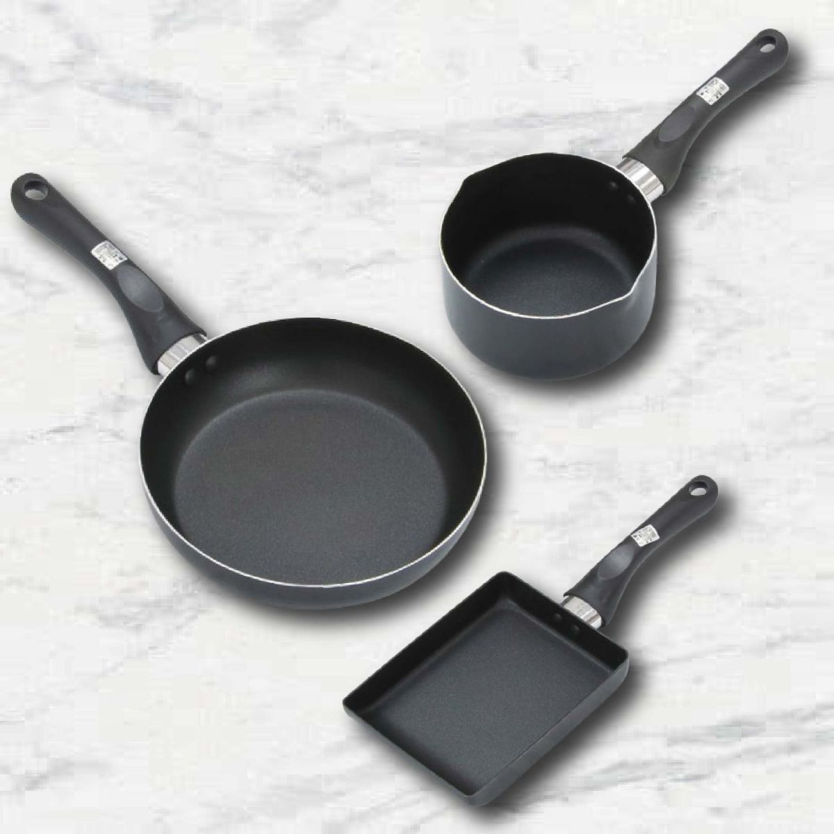 14cm圓鍋、20cm平底鍋、13x18cm玉子燒鍋、各一
